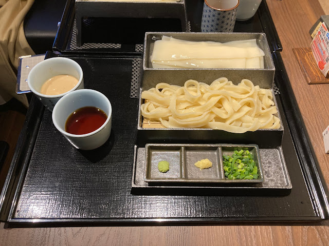 我們點了寬平烏龍麵細麵沾麵搭配醬油沾醬&普通烏龍麵搭配胡麻沾醬