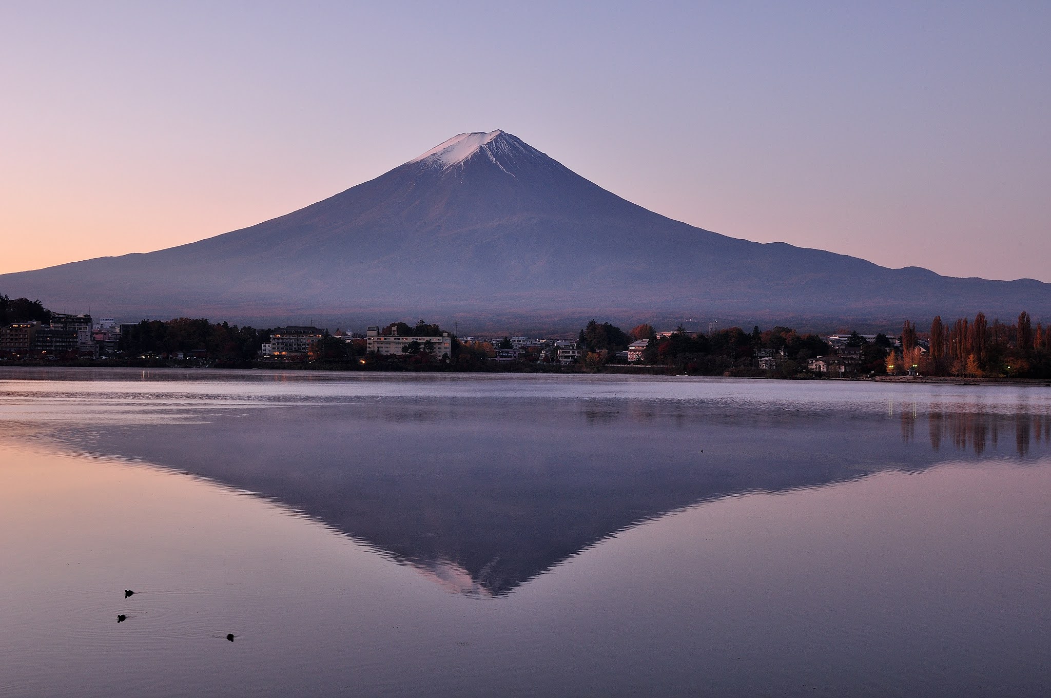 這時候光線不會太亮而且陽光在富士山後會讓湖面呈現漂亮倒影。