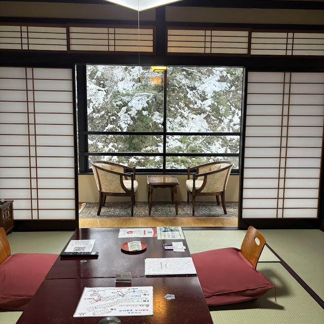 山路上一直有溫泉水往下流所以沒有結冰積雪,旅館到露天溫泉的門口有提供拖鞋